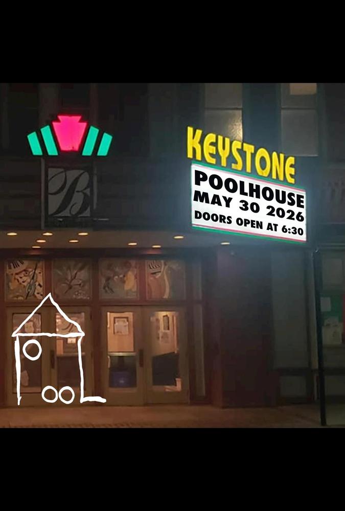 Join us in the Dunn Theatre at the Keystone Theatre on May 30, 2026 for an evening of live music featuring Pool House, a local band made up of Dylan Hartmann, Mason Hartmann, Ricky Smiley, Luke Tama, and Gary Raupers.